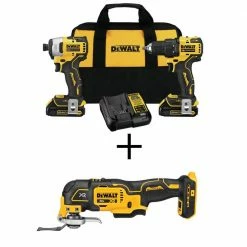 - Includes 1 DCD708B Atomic 20-Volt max compact 1/2 in. drill/driver, 1 DCF809B Atomic 20-Volt max compact 1/4 in. impact driver, (2) 20-Volt max lithium-ion 1.3 Ah battery-packs, 20-Volt max charger and contractor bag