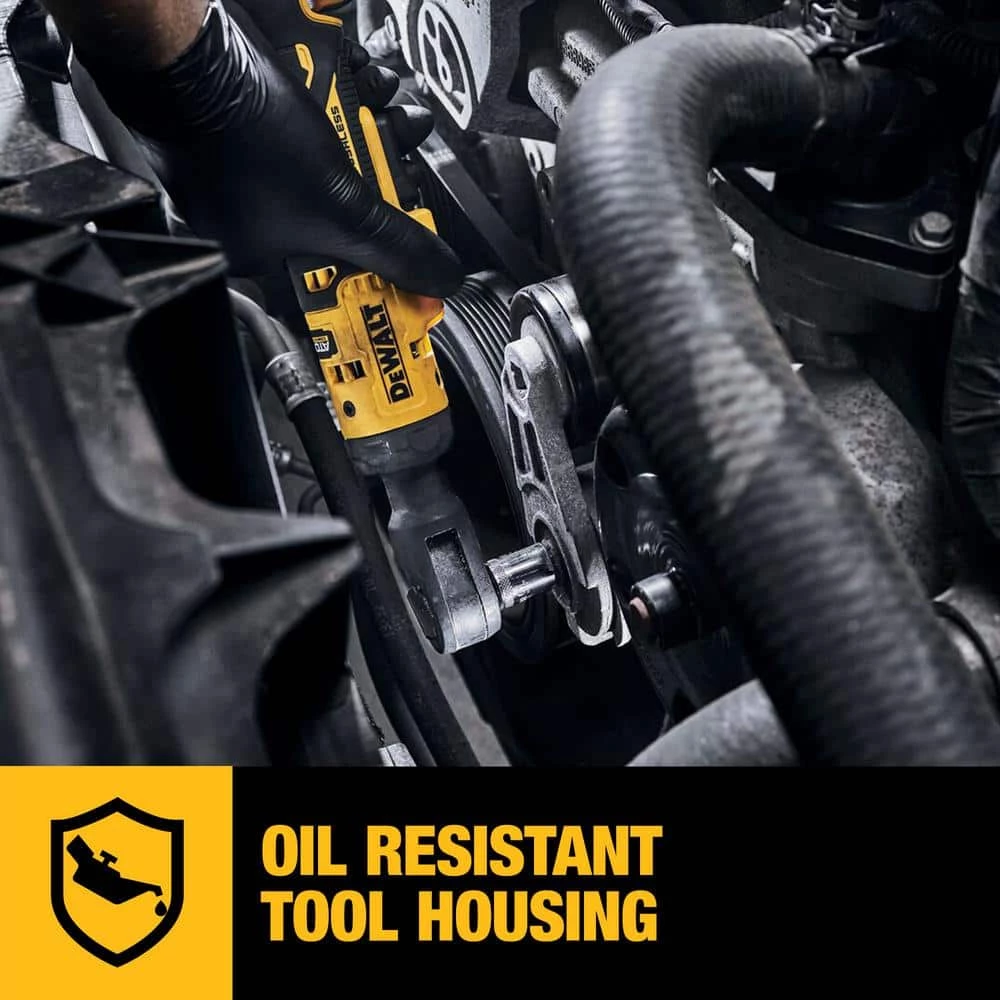 Get the performance and versatility you need to complete challenging fastening work with this ATOMIC (TM) 20V MAX* Brushless Cordless 3/8 in. Ratchet. Delivering 70 ft-lbs of max torque, the ratchet helps you tighten and remove a broad range of nuts, bolts, and other fasteners of various sizes. The glass-filled nylon housing helps prevent the effects of harsh automotive solvents and chemicals. Its integrated LED worklight helps keep your workspace well-lit, while its compact build is designed to help you access difficult-to-reach fasteners. Battery and charger not included.