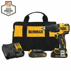 This brushless compact cordless hammer drill/driver kit includes two 20V MAX* lithium ion batteries, charger, and carrying bag. It is only 6.9 in. front to back, and its high-performance brushless motor delivers 340 unit watts outs (UWO). The hammer functionality enables users to complete masonry drilling applications. The LED provides optimum illumination in dark spaces. The handle is ergonomically designed for increased comfort, balance, and easier tool control. It also has a removable belt hook. It’s backed by a 3-year, limited warranty so you can buy with confidence.