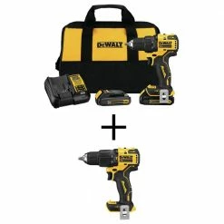 - Includes (1) DEWALT DCD708B ATOMIC 20-Volt MAX compact 1/2 in. cordless drill/driver, (2) 20-Volt MAX lithium-ion 1.3 Ah battery packs, 20-Volt MAX charger and tool bag