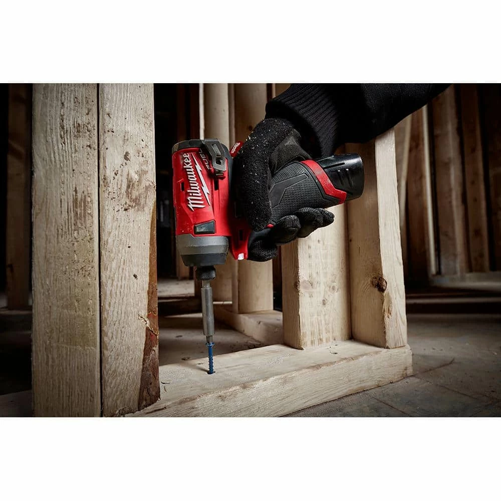The M12 FUEL 1/4 in. Hex Impact Driver once again raises the bar for 12-Volt performance with best in class driving speed, power, and size. By focusing on productivity, this Impact Driver gets the job done faster by being over 20% faster in application speed versus the competition. This tool outputs over 1,300 in./lbs. of torque that allows the user to get more work done by completing a wide range of fastening. Measuring only 5.1 in. L allows for unmatched access in tight spaces. The POWERSTATE Brushless Motor delivers up to 0-3,300 RPM with constant power output to drive screws faster. REDLINK PLUS Intelligence is the most advanced electronic system on the market, preventing damage to the tool and battery caused by overloading or overheating. For use with M12 REDLITHIUM Compact Batteries or Extended Capacity Batteries which deliver more work per charge and more work over the life of the pack than competitive batteries on the market. The 4-Mode DRIVE CONTROL provides greater control over output speed and power for greater versatility by delivering 0-1,300 RPM in Mode 1, 0-2,400 RPM in Mode 2 and 0-3,300 RPM in Mode 3. Mode 4 is Self-Tapping Screw Mode which is designed to reduce walking when starting self-tapping screws as well as reduce overdriving, breaking and stripping out screws. Includes A Free M12 3/8 in. Ratchet (2457-20).