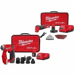 - Includes: installation drill/driver (2505-20), 4 dedicated solutions (3/8 in. chuck, 1/4 in. hex, offset and right angle), 2 M12 REDLITHIUM CP2.0 battery packs (48-11-2420), a M12 charger (48-59-2401), belt clip and compartmentalized contractor bag