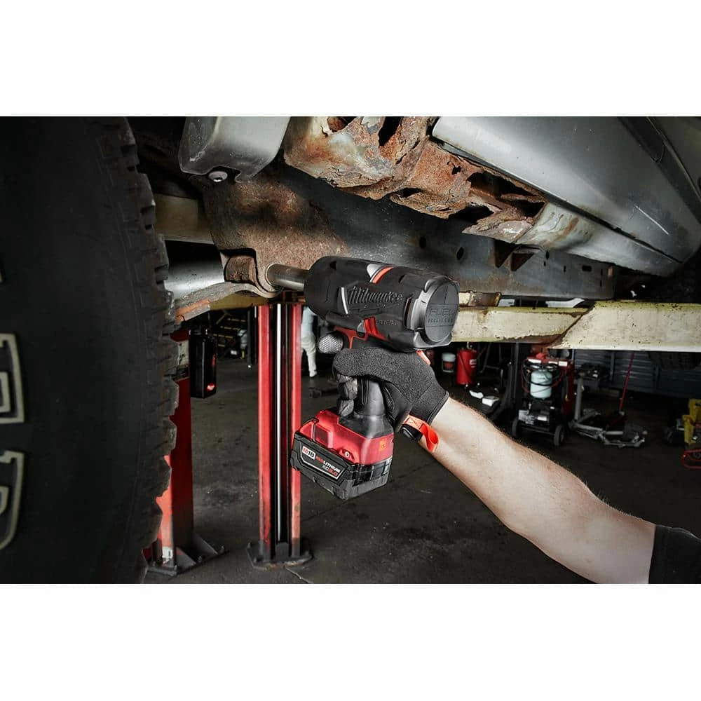 The MILWAUKEE M18 FUEL 1/2″ High Torque Impact Wrench with Friction Ring eliminates the user’s need to use a pneumatic tool for stubborn and rusted bolts. It delivers 1,000 ft-lbs of fastening torque and 1400 ft-lbs of nut-busting torque. With 2X faster removal speed, users will get the job done faster and be more productive throughout the day. It is the industry’s most compact cordless high torque impact wrench at 8.39″ in length. This provides users more access to tight spaces. 4-Mode DRIVE CONTROL with Bolt Removal mode gives users the most control over their fasteners. Bolt Removal mode also gives users more control when removing fasteners by slowing to 750rpm once the fastener has been busted loose. This tool offers quick, tool-free socket changes with a 1/2 in. friction ring anvil. A premium rubber overmold material provides users ultimate comfort during prolonged use while lasting longer against corrosive materials.
