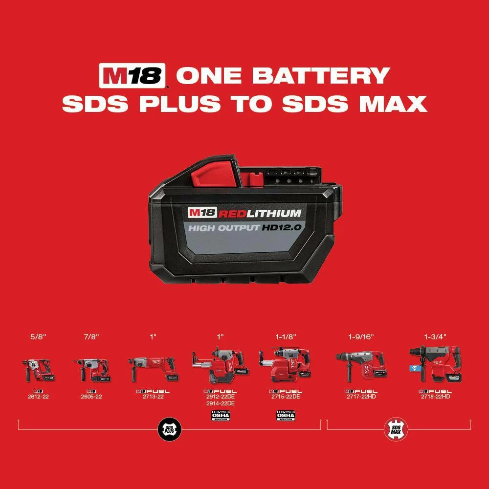 - Includes: (1) M18 FUEL 1 in. SDS plus rotary hammer (2912-20) and (1) M18 5.0Ah battery