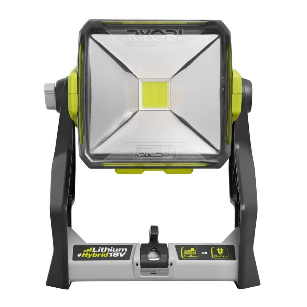 - Dual power, 20-Watt LED Work Light operates with any RYOBI 18V ONE+ battery or with electric power using an extension cord