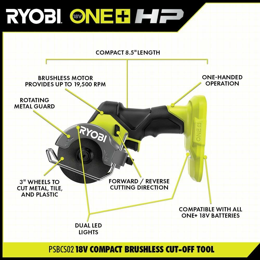 - Part of the RYOBI 18V ONE+ System of over 260 cordless tools